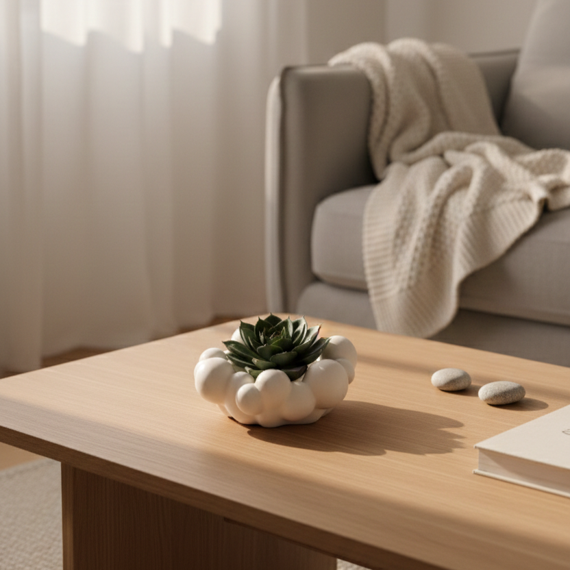 Minimalism Pur: Realizat dintr-un material mat, de un alb imaculat, se integrează perfect în decoruri moderne, scandinave sau japandi.
