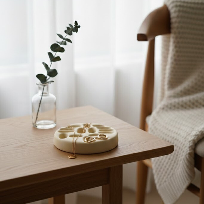 Redefinește modul în care îți păstrezi obiectele prețioase cu suportul „Oaza Bijuteriilor”. Această piesă sculpturală nu este doar un organizator, ci o mică expoziție de artă pentru accesoriile tale zilnice, oferind fiecărei piese locul său binemeritat.